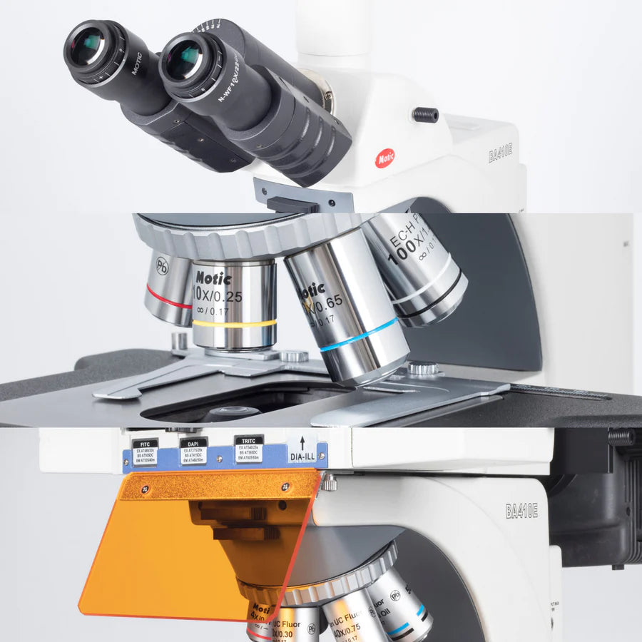 - Microscopio séxtuple trinocular BA410E 3WLED (luz dividida 80/20)